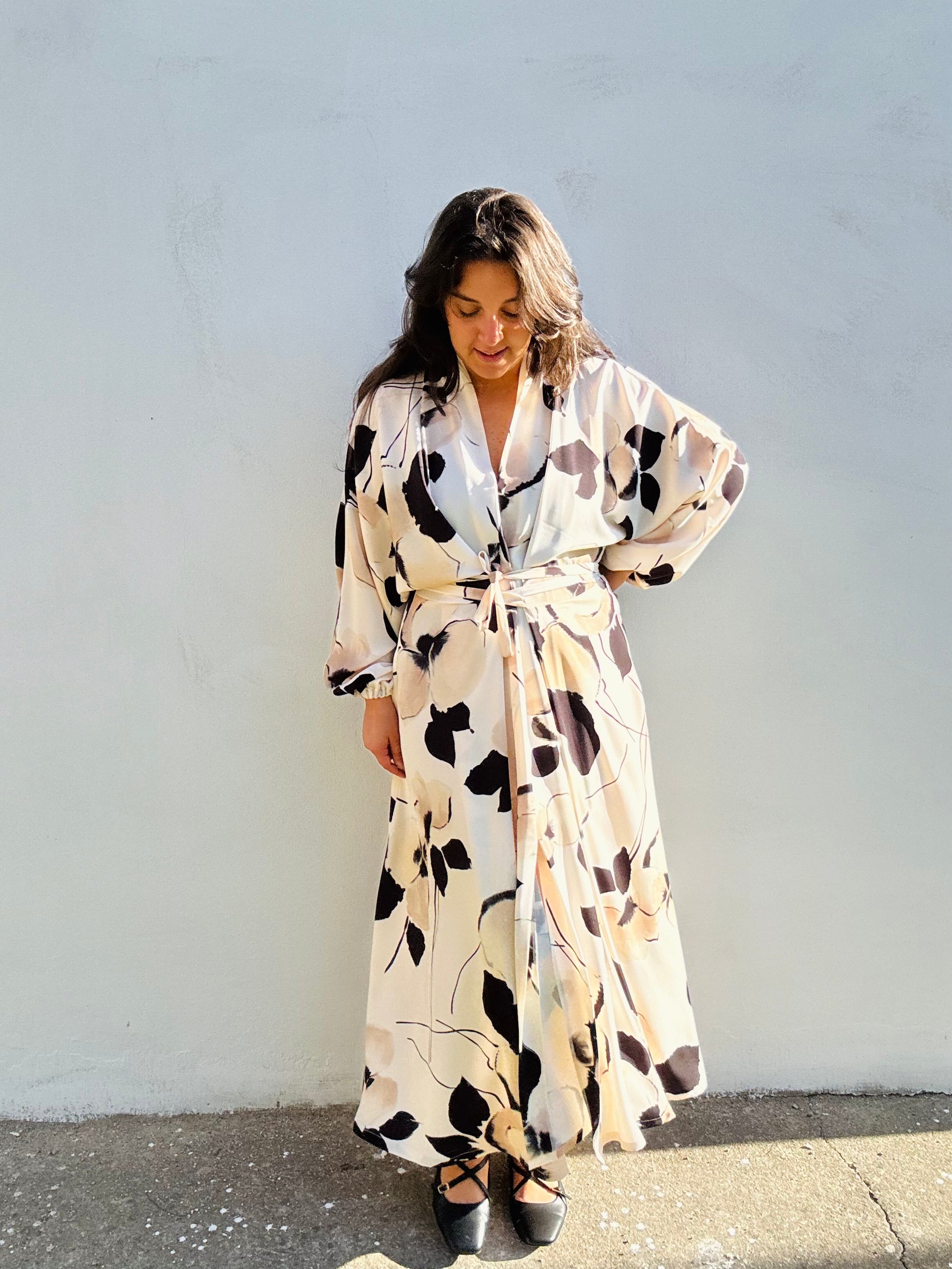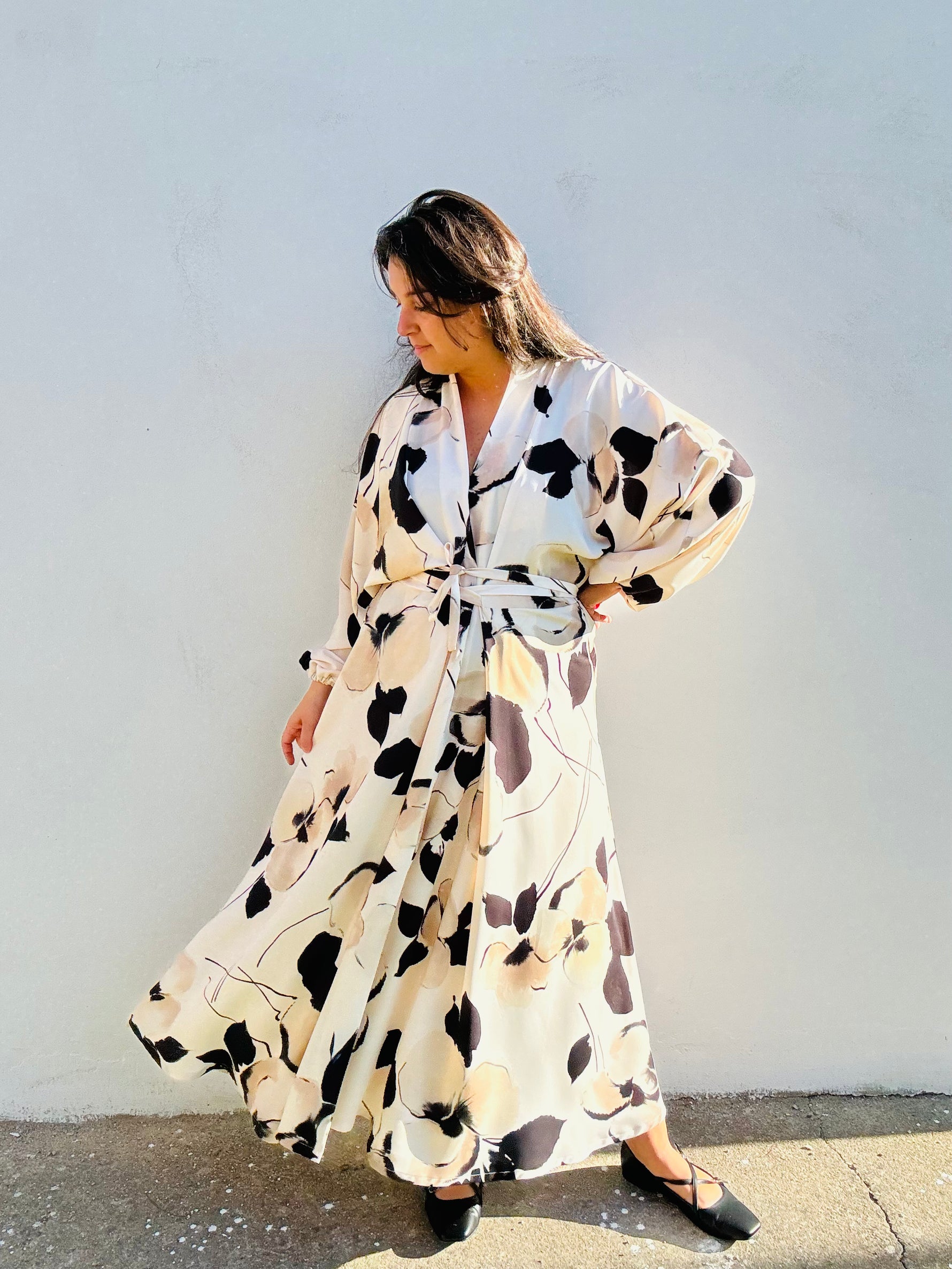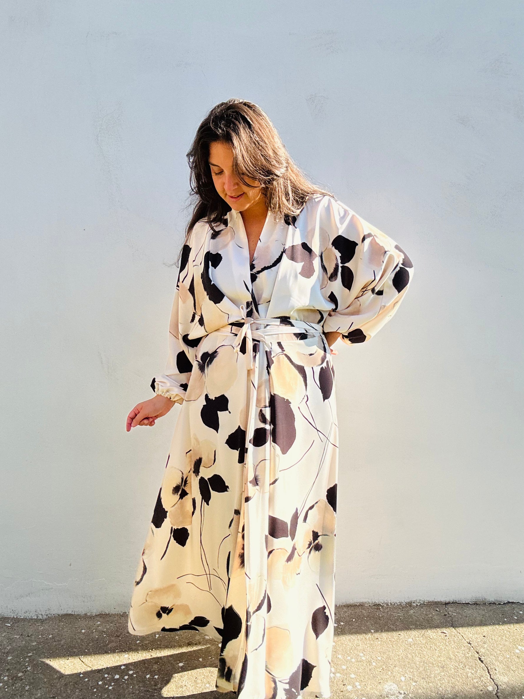 L’abito kimono ha una vestibilità che gli permette di essere indossato da diverse taglie.